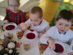 19-12-2025r.- w grupie Wiewióreczek dzieci łamały się opłatkiem, składając sobie życzenia, śpiewały kolędy, następnie usiadły do pięknie nakrytego, wigilijnego stołu...