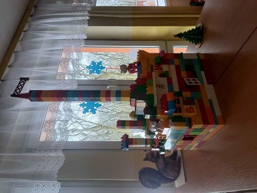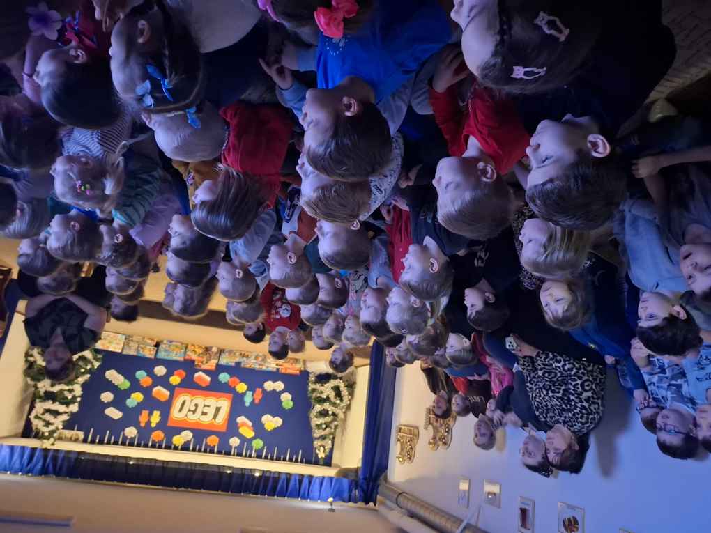 30-01-2026 r. w przedszkolu obchodziliśmy wspólnie, wszystkie grupy Dzień Klocków Lego. Przedszkolaki poznały historię klocków oraz ciekawostki związane z ich produkcją. Obejrzały kilka modeli pojazdów oraz zestawów klocków LEGO.