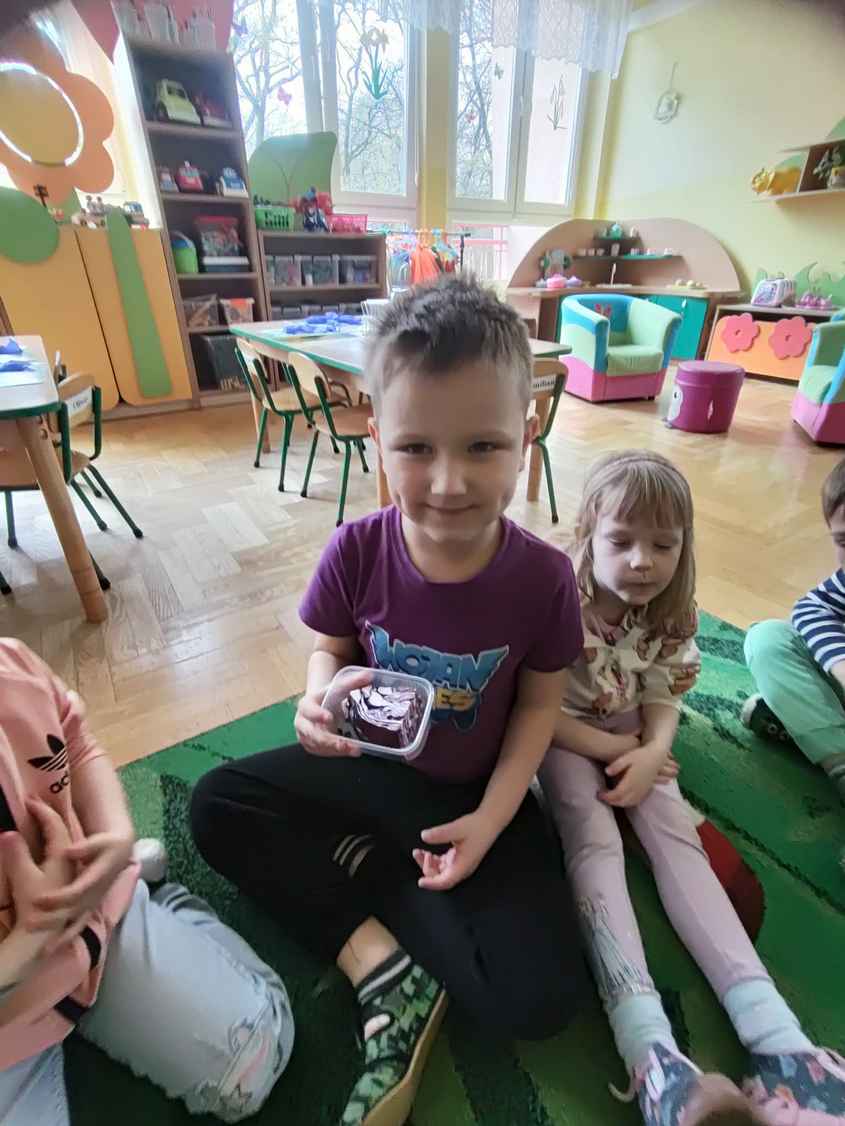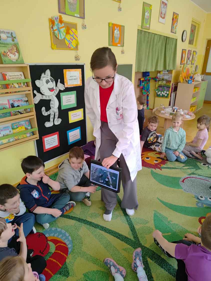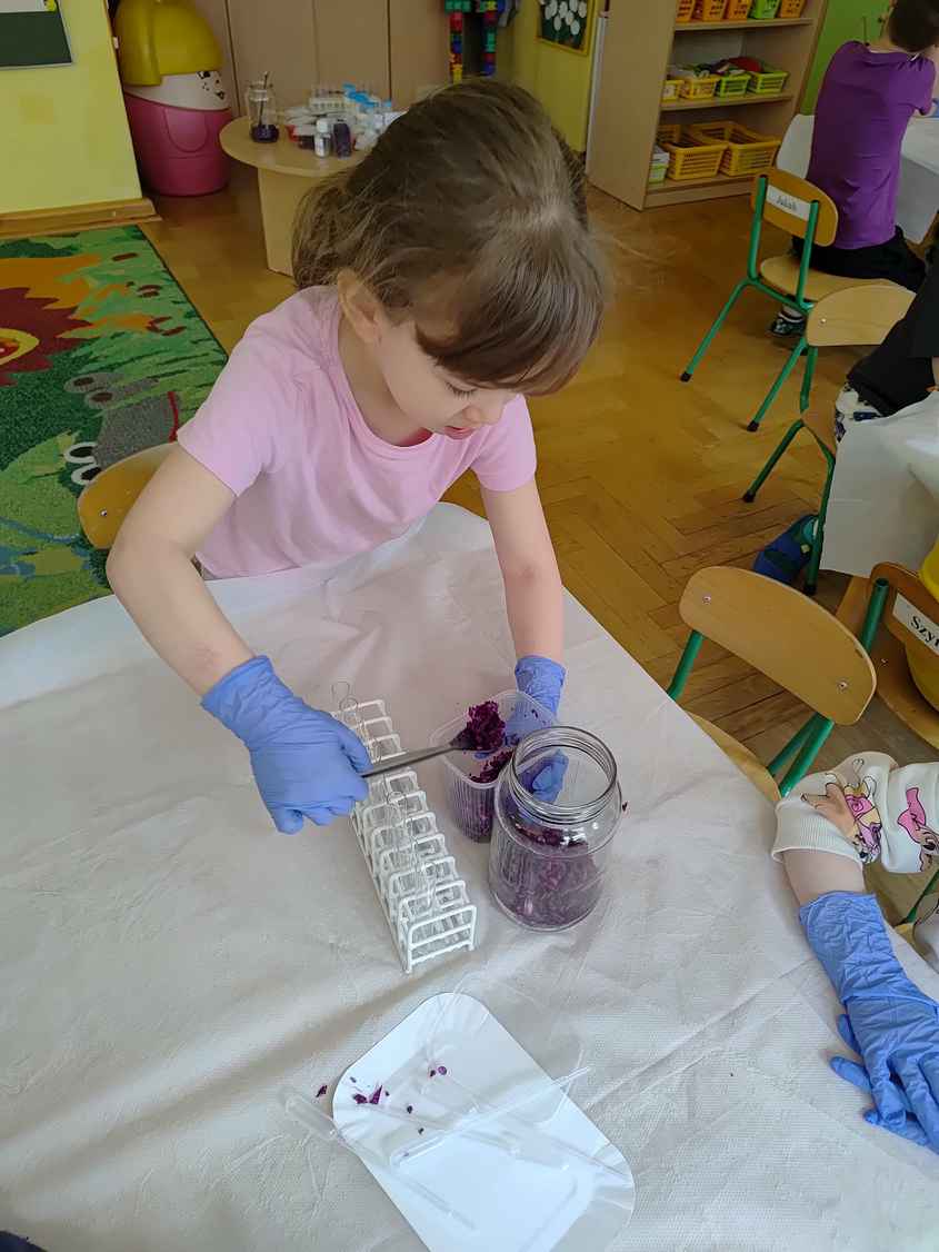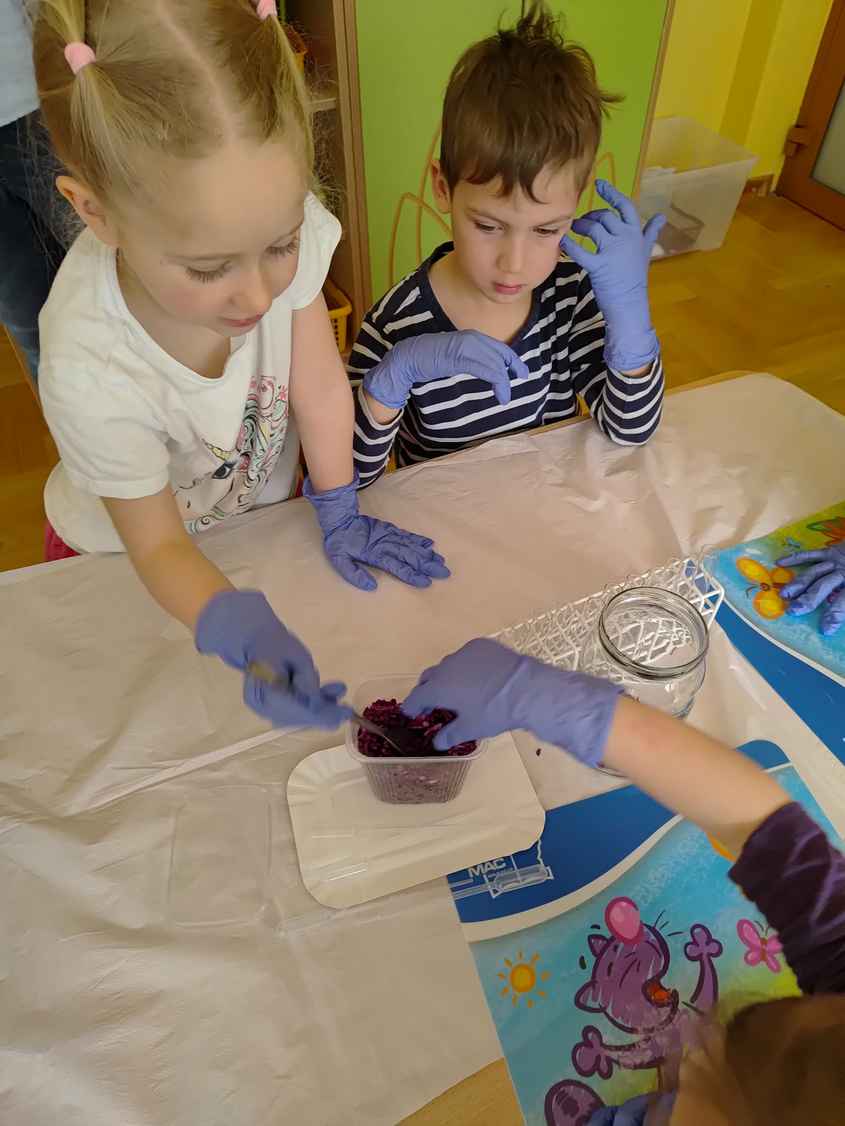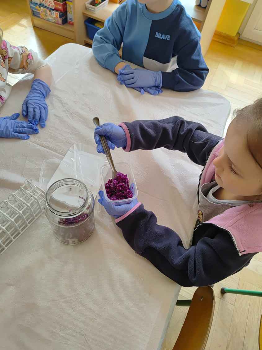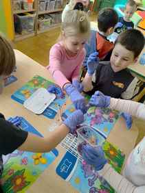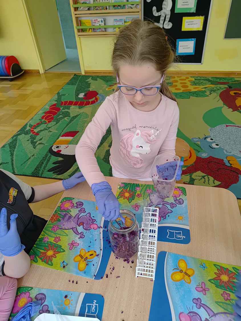 14-04-2026 r. Kotki gościły mamę Artura, która wykonuje zawód naukowca. Przedszkolaki wzięły udział w warsztatach Barwy natury, podczas których miały okazję dowiedzieć się jakie barwy występują w naturze, poznać różne barwniki, usłyszeć jakie jest ich znaczenie w diecie człowieka. Dzieci dowiedziały się, które ze znanych im produktów spożywczych barwione są barwnikami naturalnymi, a które chemicznymi, oraz jaki jest ich wpływ na nasze zdrowie. Bardzo serdecznie dziękujemy p. Paulinie za poświęcony czas i bardzo ciekawe warsztaty!!!