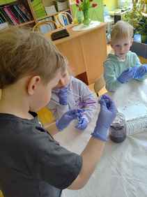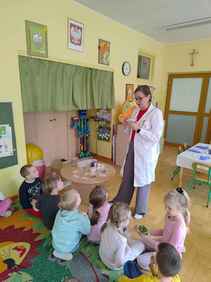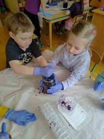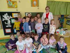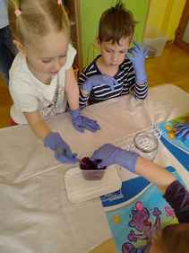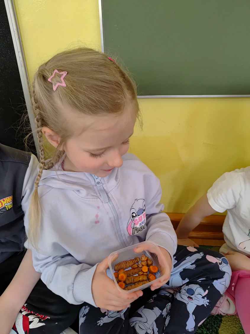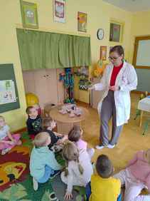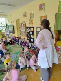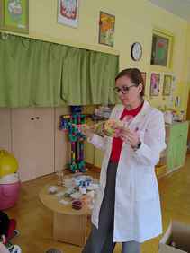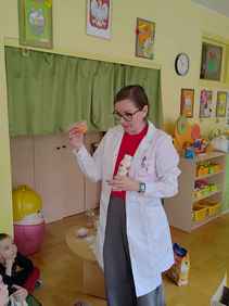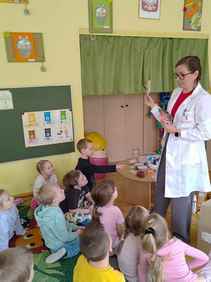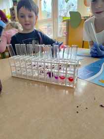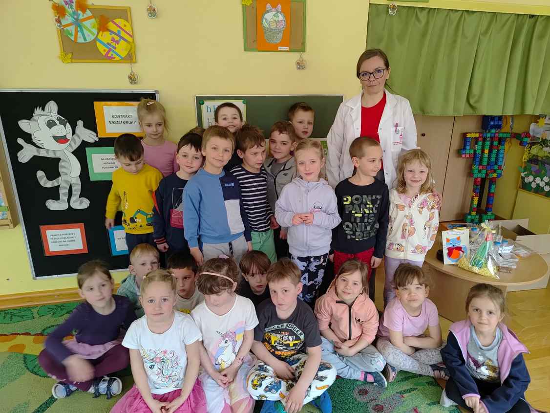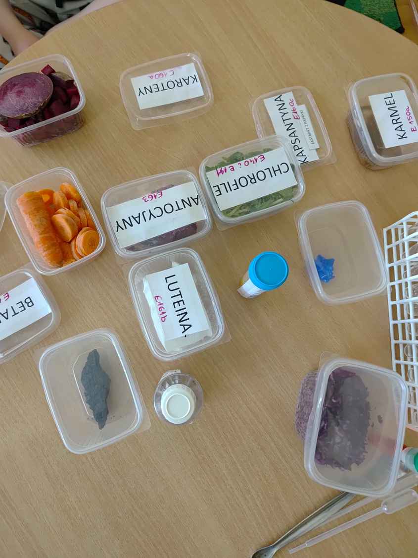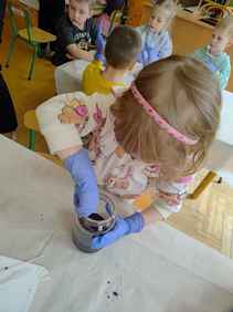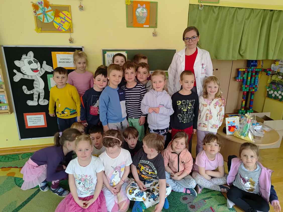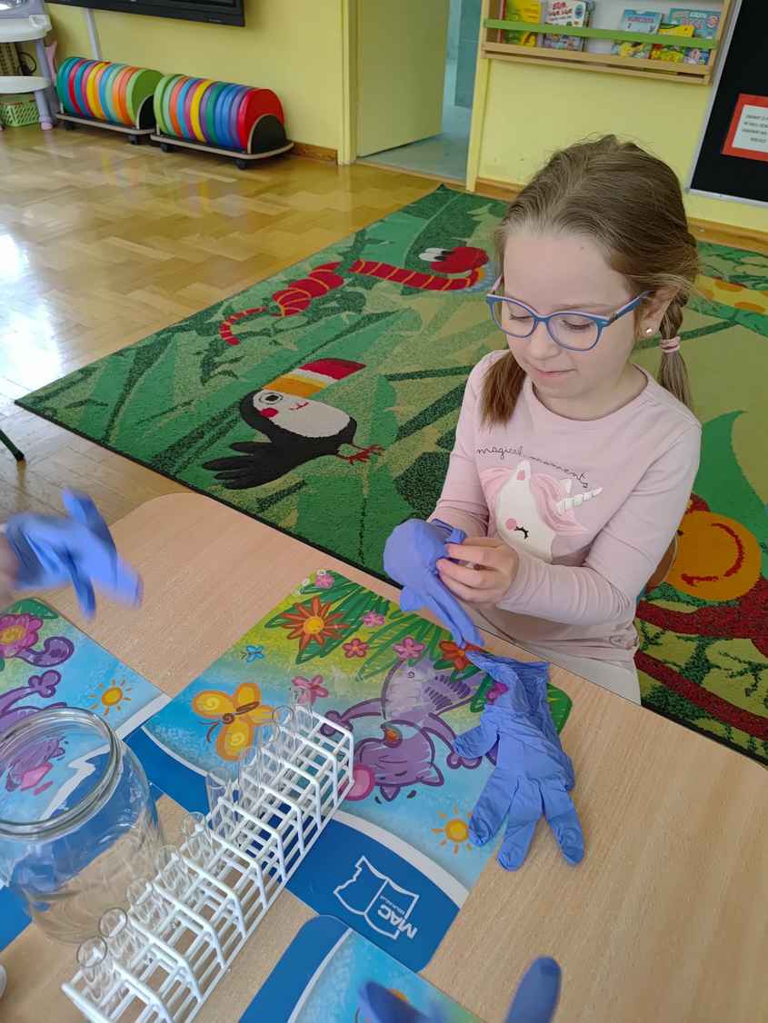 14-04-2026 r. Kotki gościły mamę Artura, która wykonuje zawód naukowca. Przedszkolaki wzięły udział w warsztatach Barwy natury, podczas których miały okazję dowiedzieć się jakie barwy występują w naturze, poznać różne barwniki, usłyszeć jakie jest ich znaczenie w diecie człowieka. Dzieci dowiedziały się, które ze znanych im produktów spożywczych barwione są barwnikami naturalnymi, a które chemicznymi, oraz jaki jest ich wpływ na nasze zdrowie. Bardzo serdecznie dziękujemy p. Paulinie za poświęcony czas i bardzo ciekawe warsztaty!!!