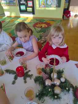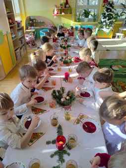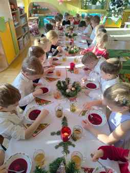 19-12-2025 r. W południe Kotki usiadły do pięknie nakrytego, wigilijnego stołu. Wcześniej składały sobie świąteczne życzenia i śpiewały kolędy.