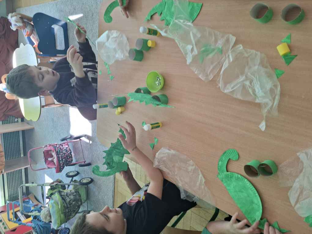 26-02-2026 r. w grupie Biedroneczek obchodziliśmy Dzień Dinozaura. Dzieci dowiedziały się, kiedy żyły, czym się odżywiały, jakie mogły być przyczyny ich wyginięcia. Biedroneczki wykonały dinozaura z papierowego talerzyka, bawiły się w paleontologów wydobywając figurki dinozaurów.