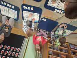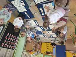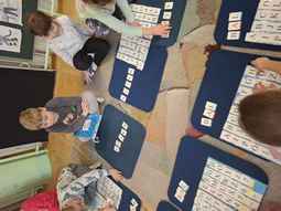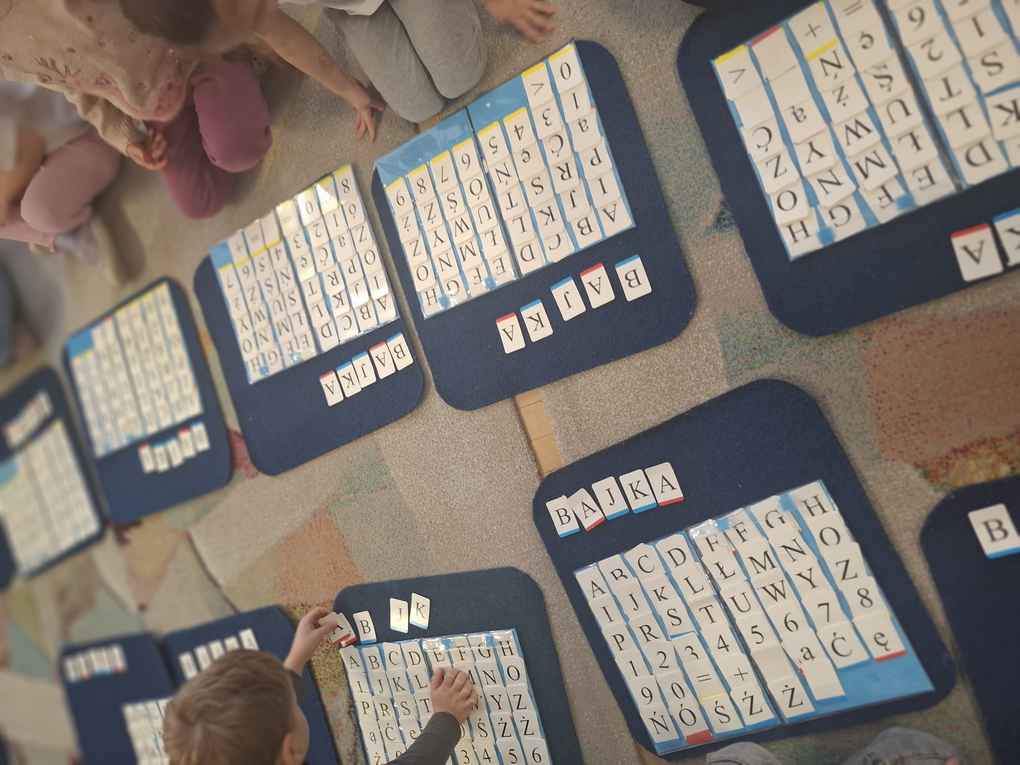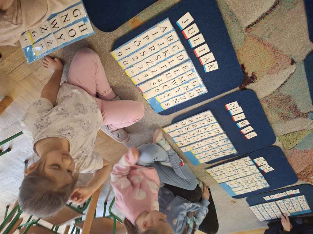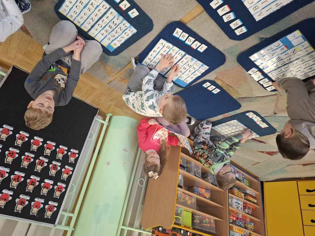 29-01-2026 r. Biedronki utrwalały poznane litery układając wyrazy i proste zdania. Wszystkie z wielkim zaangażowaniem wykonywały zadania.