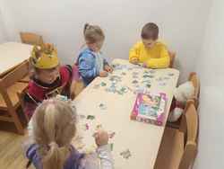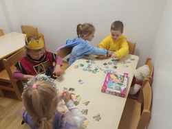 21-11-2025 r. To był wyjątkowy dzień. Dzieci przebrały się za bohaterów z bajek i odbył się uroczysty bal oraz przedstawienie pt. Kopciuszek przygotowane przez grupę Borsuczków. Wiewióreczki od rana prezentowały swoje stroje, a później bawiły się na balu z grupą I, II, VI i VII.
