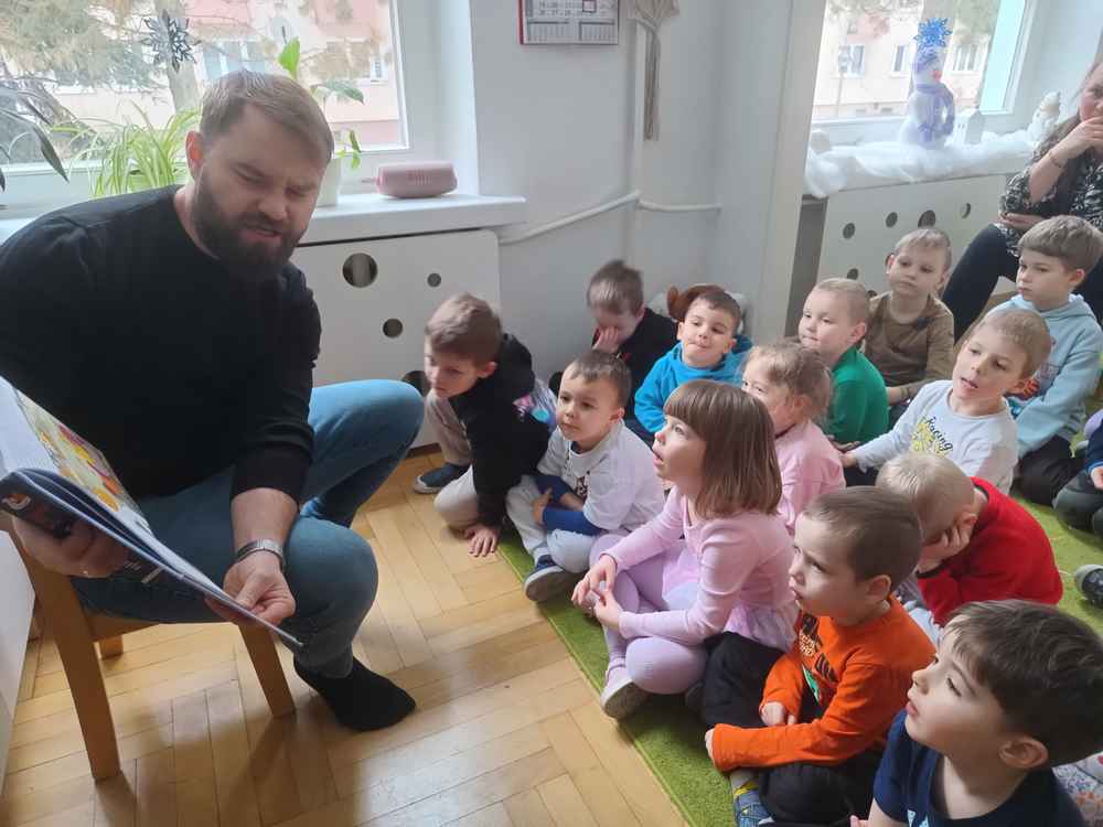 23-01-2026 r. W tym tygodniu grupę Wiewióreczek odwiedził tata Lilianki. Przeczytał dzieciom kilka opowiadań o przygodach Reksia i jego przyjaciół. Dzieciom bardzo się podobało, słuchały z wielkim zainteresowaniem. Zapraszamy na fotorelację.