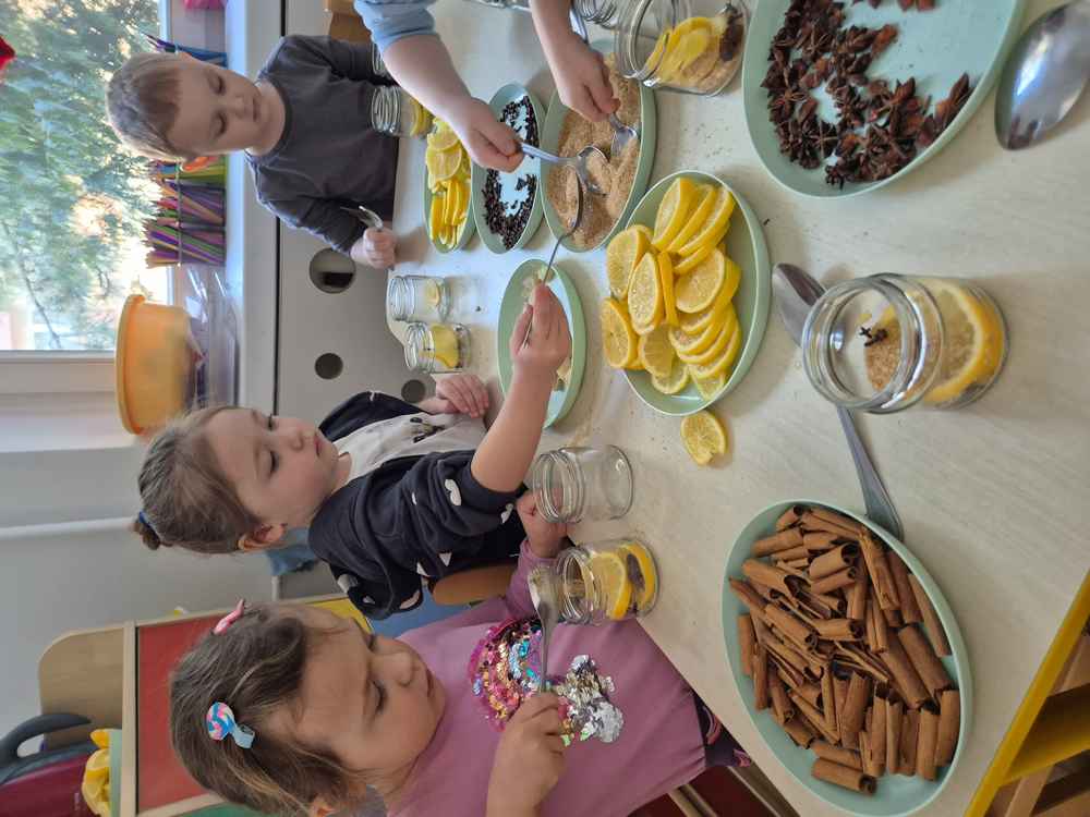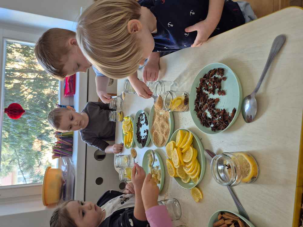 19-01-2026 r. dzieci z grupy Wiewiórek samodzielnie komponowały zimowy napój rozgrzewające, poznając przy tym przyprawy. Zapraszamy na fotorelację.