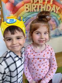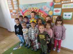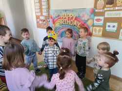 12-03-2026 r. - w grupie Wiewiórek Dominik świętował swoje 5 urodziny. Koledzy, koleżanki i panie odśpiewali Jubilatowi sto lat i złożyli życzenia, wręczyli upominek. Dominik miał dla każdego małe niespodzianki.