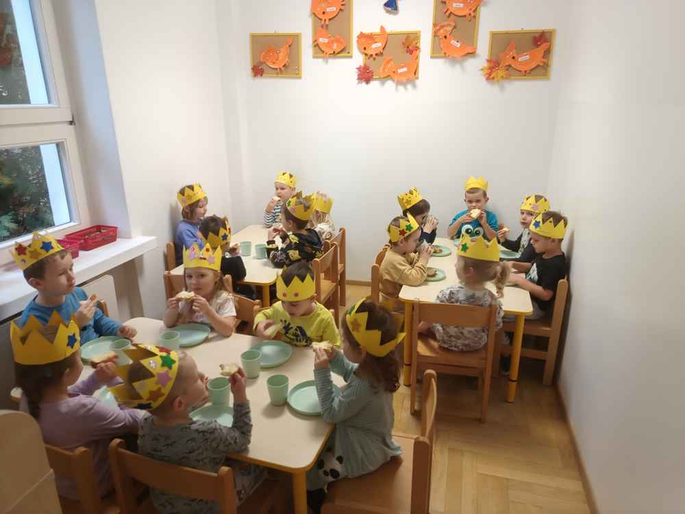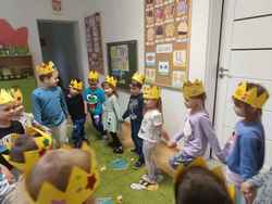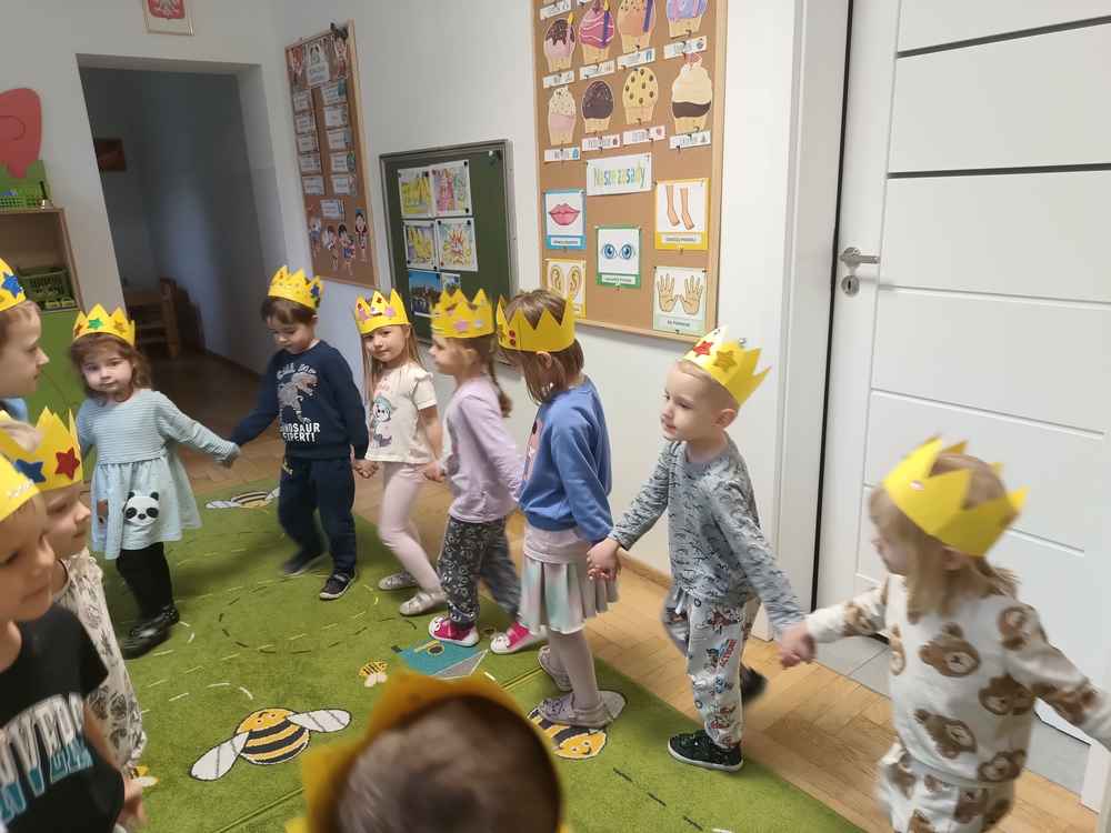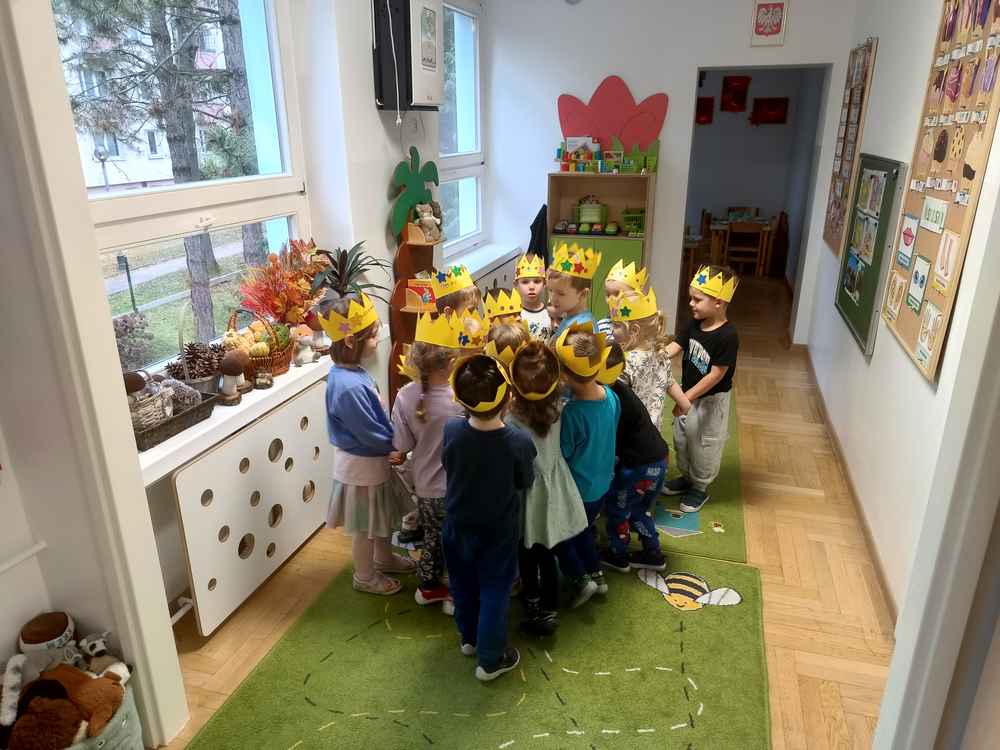 20-11-2025 r. Wiewióreczki w tym tygodniu ćwiczenia wykonywały, bajek słuchały, zamki budowały, o królach i królowych rozmawiały, korony ozdabiały, tańce dworskie tańczyły, wesoło się bawiły.