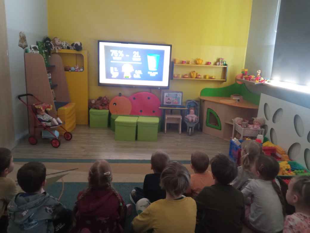 09-03-2026 r. dzieci brały udział w programie Akademia Wodnych Agentów na zaproszenie Zespołu CzasDzieci.pl i Wodociągów Miasta Krakowa. Rozmawiały na temat wody, jej występowania na Ziemi. Miały za zadanie odnaleźć wodę pitną, ustalić: dlaczego woda pitna jest tak ważna i jak można ją oszczędzać w domu i w przedszkolu? W ramach działania na rzecz oszczędzania wody - od tygodnia Misie mają dyżury w łazience podczas mycia rąk "Patrol w trosce o wodę."