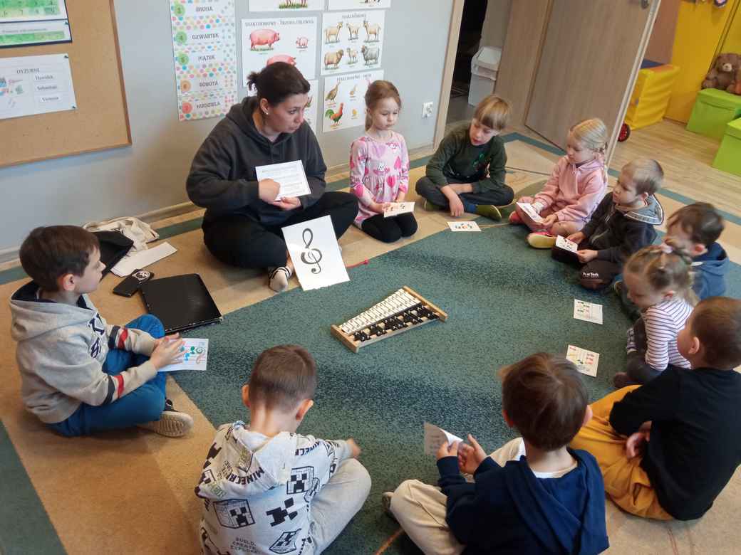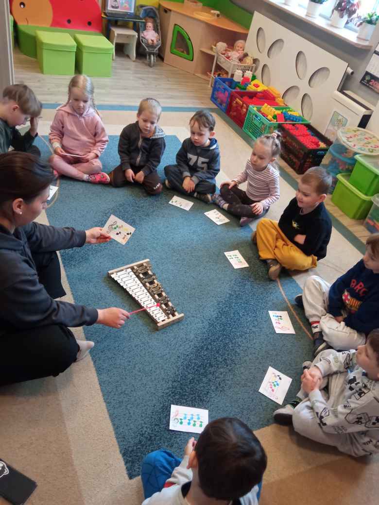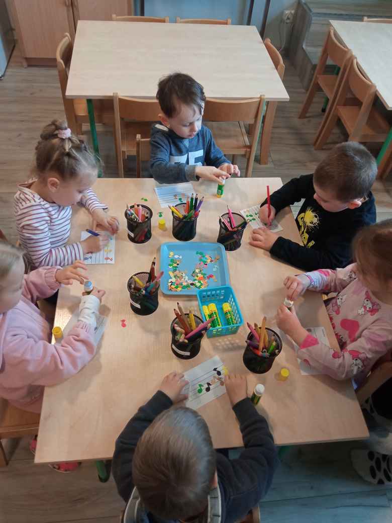 08-04-2026 r. w środę Misie bawiły się w kompozytorów. Układały nutki na pięciolinii, a następnie słuchały, jakie melodie skomponowały. Bycie kompozytorem przedszkolakom bardzo się podobało.