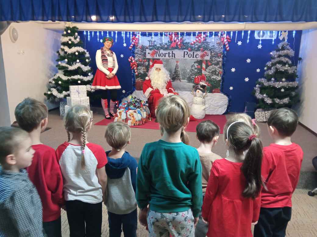 05-12-2025 r. piątek - dzień wymarzony. Misie były na spotkaniu z Mikołajem. Najpierw oglądały przedstawienie " List do św. Mikołaja.", a po nim zaśpiewały Mikołajowi piosenkę oraz złożyły Mu życzenia i wręczyły własnoręcznie wykonaną kartkę imieninową. Mikołaj rozdał dzieciom prezenty, a na pamiątkę tego dnia zrobiliśmy sobie wspólne zdjęcie.