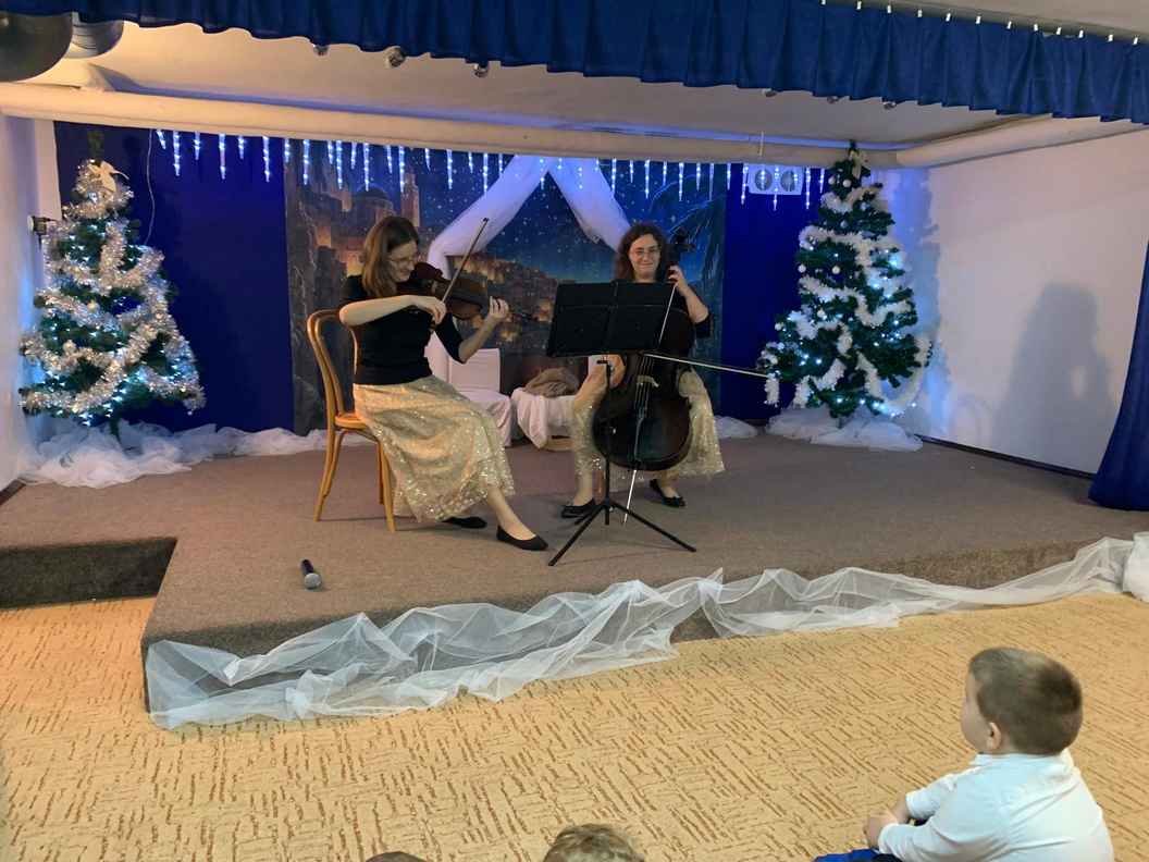 18-12-2025 r. Dzieci z całego przedszkola wzięły udział w świątecznym koncercie w wykonaniu absolwentek Akademii Muzycznej w Krakowie oraz byłej absolwentki naszego przedszkola.