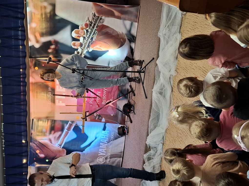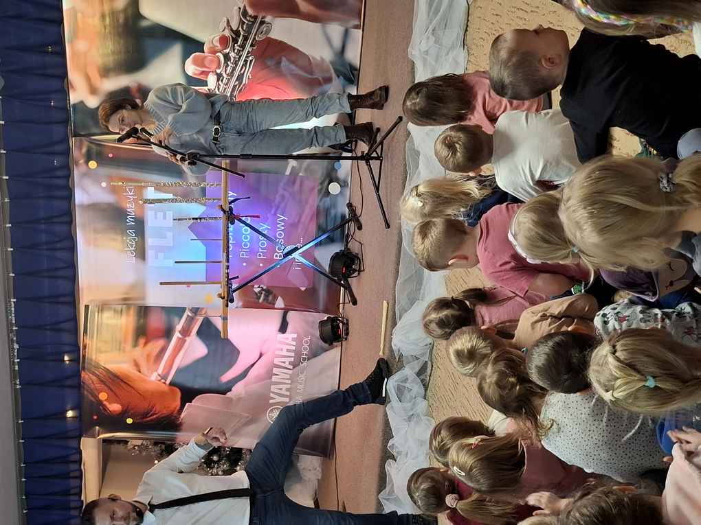 12-01-2026 r. dzieci z całego przedszkola ponownie gościły zespół muzyczny Yamaha. Tym razem tematem przewodnim koncertu był flet.