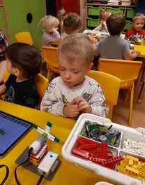12-11-2025 r. W zajęciach z robotyki Krasnalki doskonaliły wyobraźnię, precyzję, uważne słuchanie, rozumienie poleceń...a efektem ćwiczeń był śpiewający wiatraczek