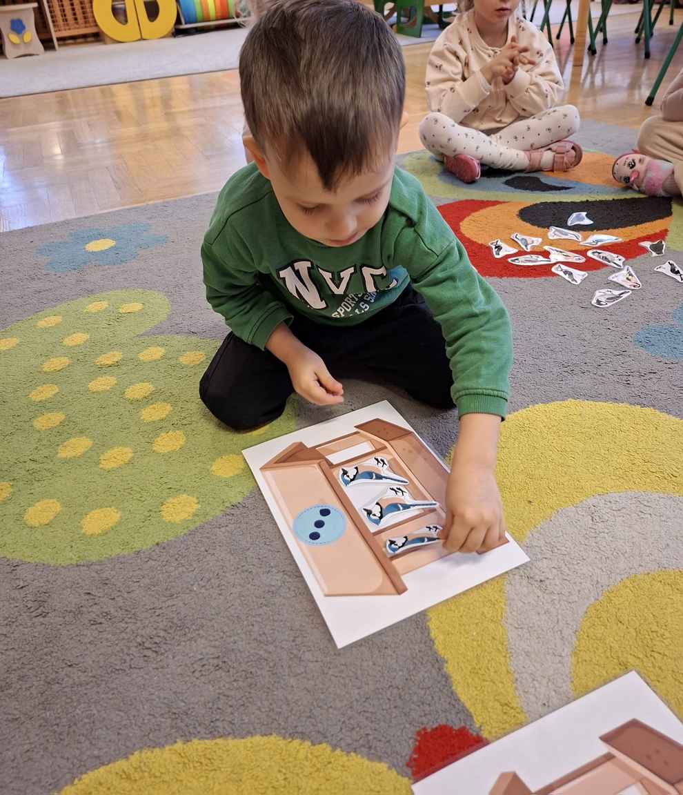 26 do 30-01-2026 r. W tym tygodniu "Motylki" poznały sposoby dokarmiania zwierząt w zimie. W ramach pomocy skrzydlatym przyjaciołom, dzieci pomalowały grupowy karmnik, który stanie się ptasią stołówką. Ponadto, przedszkolaki wzięły udział w zabawie matematycznej, doskonalącej umiejętność przeliczania w zakresie 5. Na zakończenie "Motylki" wykonały pracę plastyczną pt. "Karmnik".