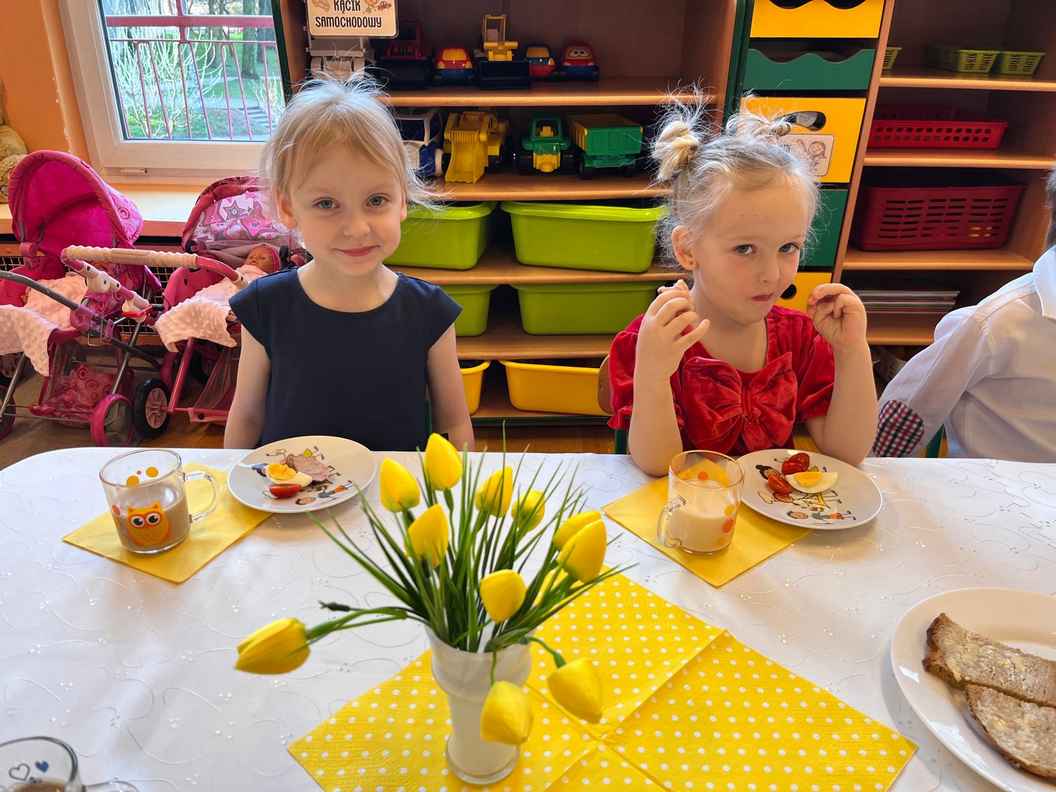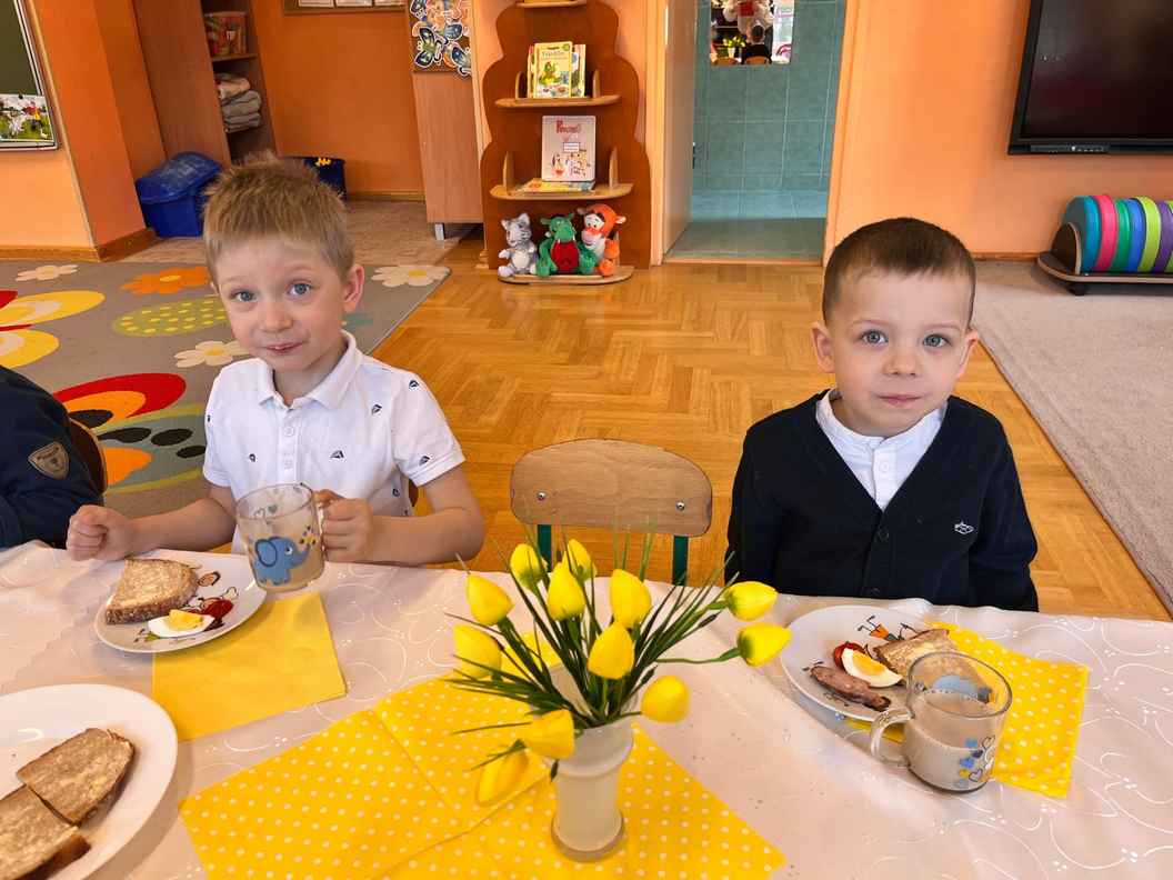 01-04-2026 r. z okazji Świąt Wielkanocnych w grupie "Motylki" odbyło się uroczyste śniadanie wielkanocne, podczas którego dzieci wspólnie zasiadły do pięknie udekorowanego stołu. Na śniadaniu pojawiły się tradycyjne potrawy, które przedszkolaki zjadły ze smakiem.