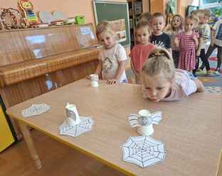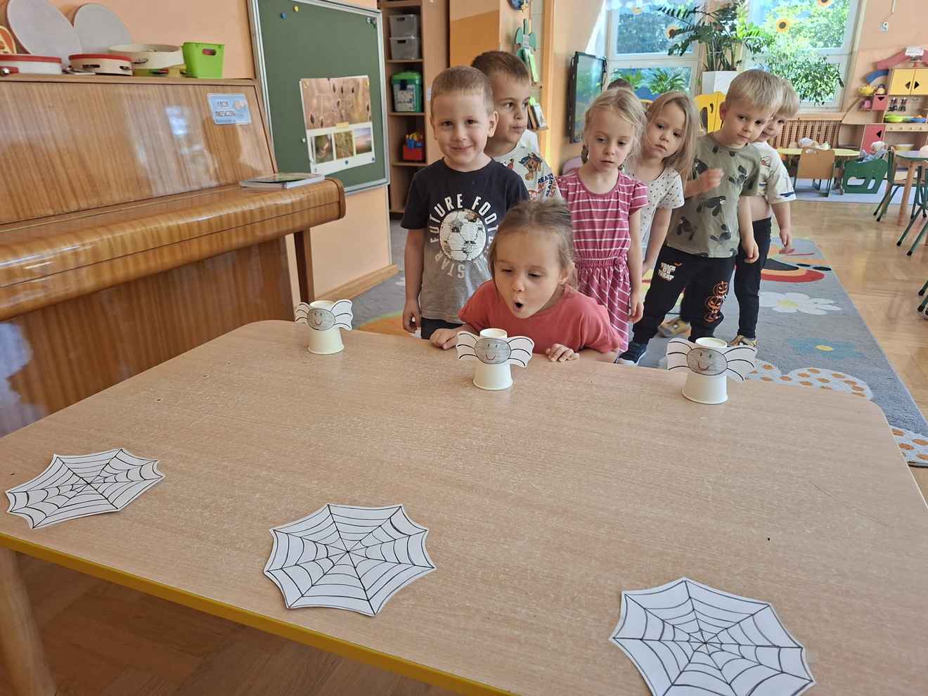 22-09-2025 r. „Zaprowadź Pajączka do pajęczyny"- Podczas rozmów o babim lecie, dzieci wykonały proste ćwiczenie oddechowe.