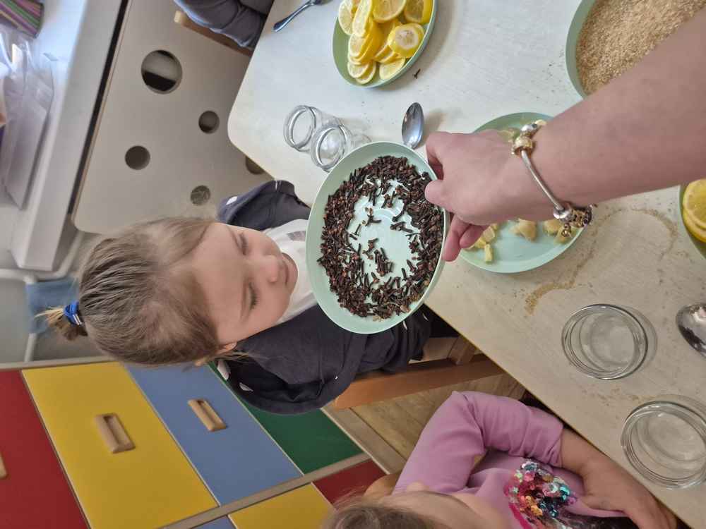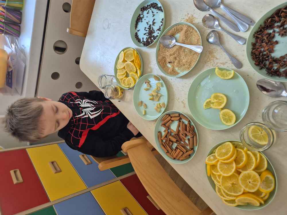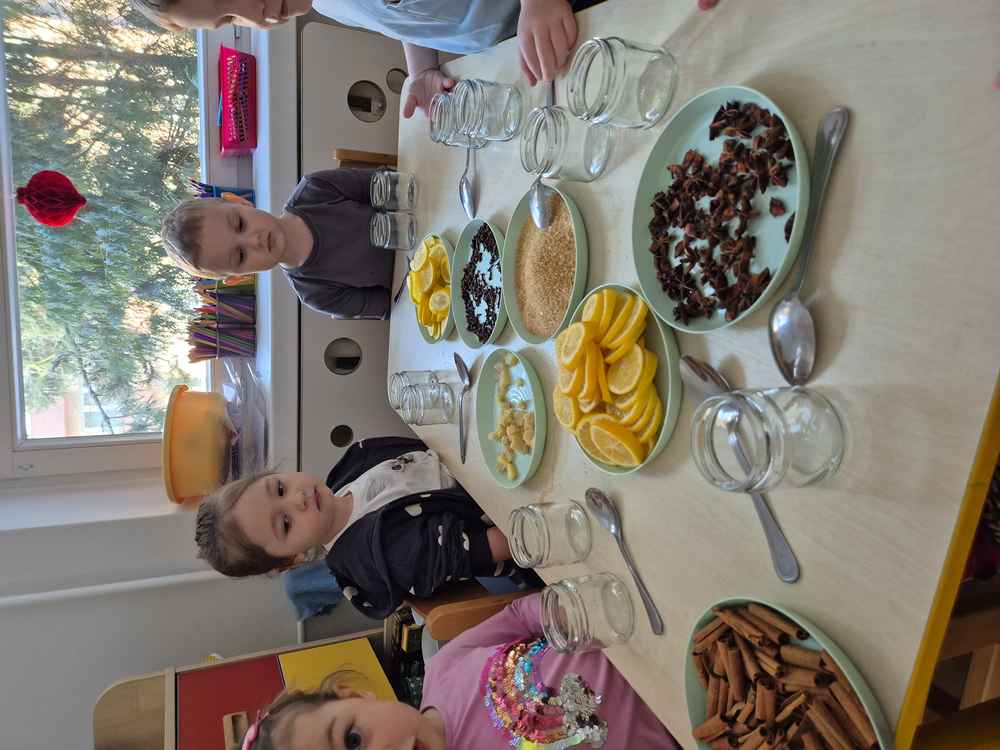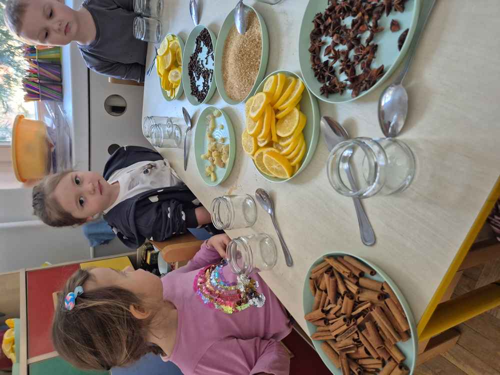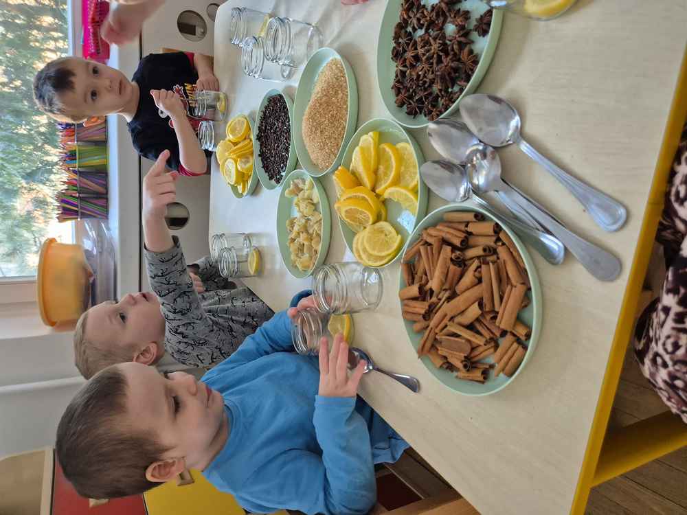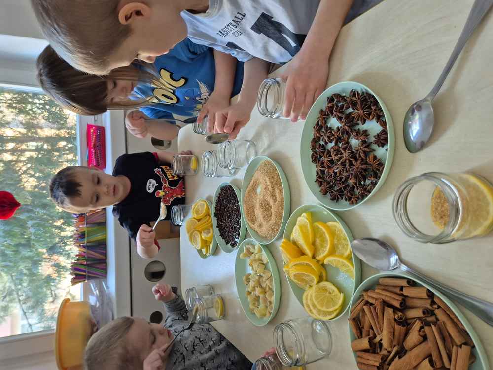 19-01-2026 r. dzieci z grupy Wiewiórek samodzielnie komponowały zimowy napój rozgrzewające, poznając przy tym przyprawy. Zapraszamy na fotorelację.