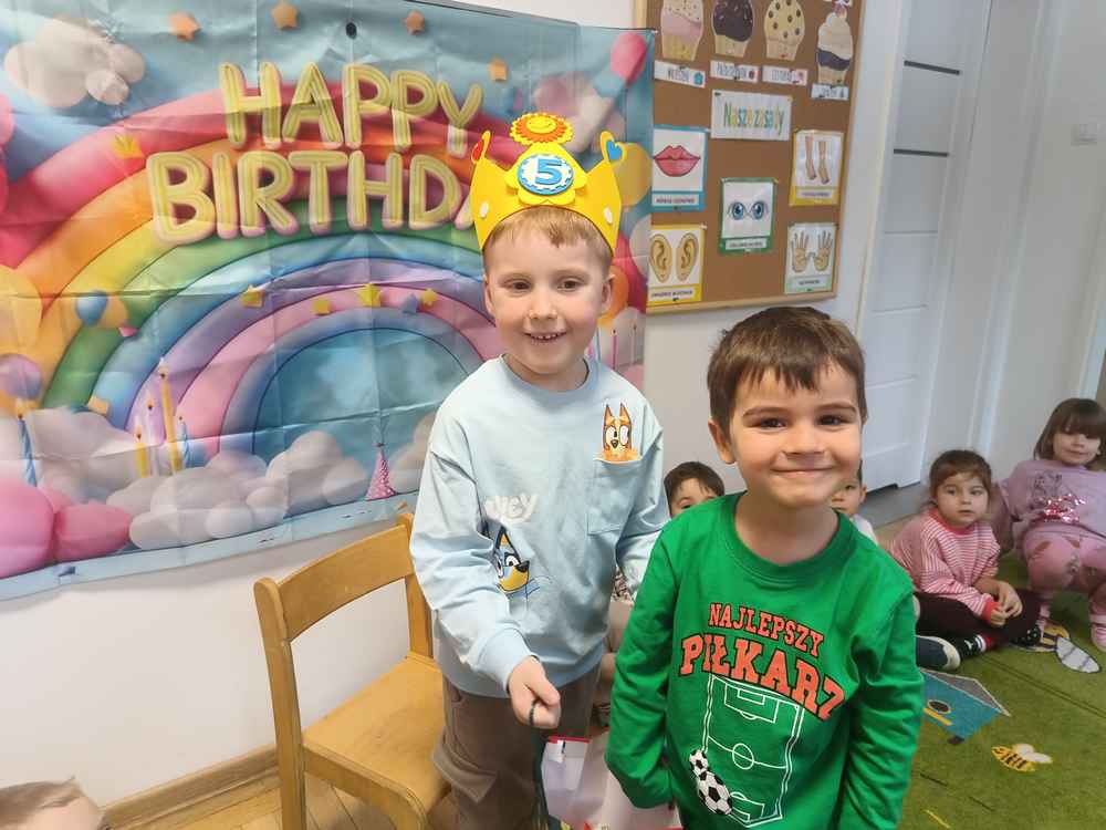 12-01-2026 r. Kuba świętował swoje 5 urodziny. Było dużo radości. Wiewióreczki złożyły koledze najserdeczniejsze życzenia, odśpiewały gromkie Sto lat! Jubilat poczęstował wszystkich cukierkami.