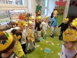 20-11-2025 r. Wiewióreczki w tym tygodniu ćwiczenia wykonywały, bajek słuchały, zamki budowały, o królach i królowych rozmawiały, korony ozdabiały, tańce dworskie tańczyły, wesoło się bawiły.