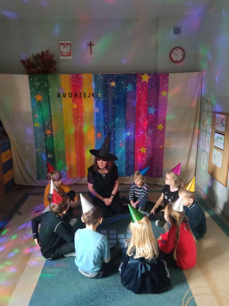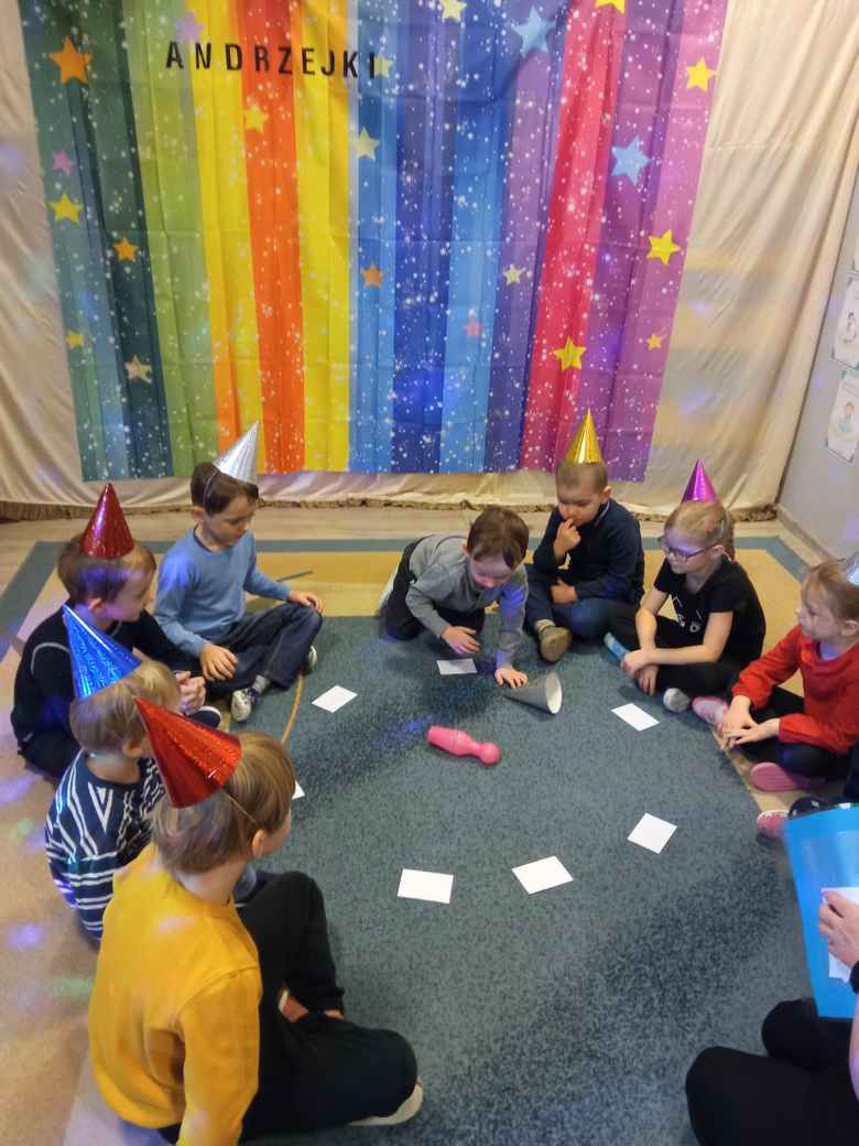 28-11-2025 r. w piątek Misie miały Andrzejki. Chciały zajrzeć w przyszłość, sprawdzić co je czeka. Przygotowane rekwizyty, kolorowe światła stworzyły odpowiedni nastrój. Dzieci poznały znaczenie różnych kolorów, liczb, magicznych przedmiotów. Za pomocą przygotowanych obrazków sprawdzały, kim zostaną w przyszłości. Wszystkie wróżby przeplatane były pląsami, tańcami przy muzyce. Czy wróżby się spełnią? Przyszłość nam pokaże. Pewne jest to, że przyniosły przedszkolakom wiele radości i były okazją do wspólnej, wesołej zabawy.