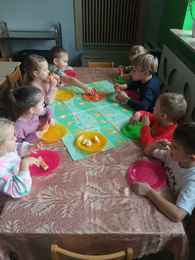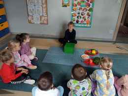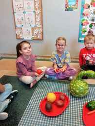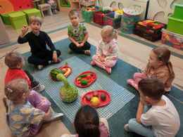 21-10-2025 r. Dzień Owoców i Warzyw w grupie 7 to święto mające na celu promocję zdrowych nawyków żywieniowych. Dzieci uczestniczyły w różnych aktywnościach: rozpoznawały owoce i warzywa po dotyku, zapachu i smaku, segregowały naturalne okazy, tworzyły prace plastyczne oraz miały owocową ucztę. W sali zapachniało owocami i warzywami. Było kolorowo, wesoło i smacznie.