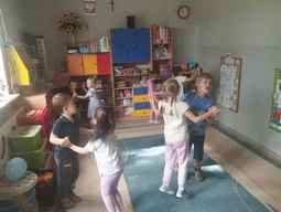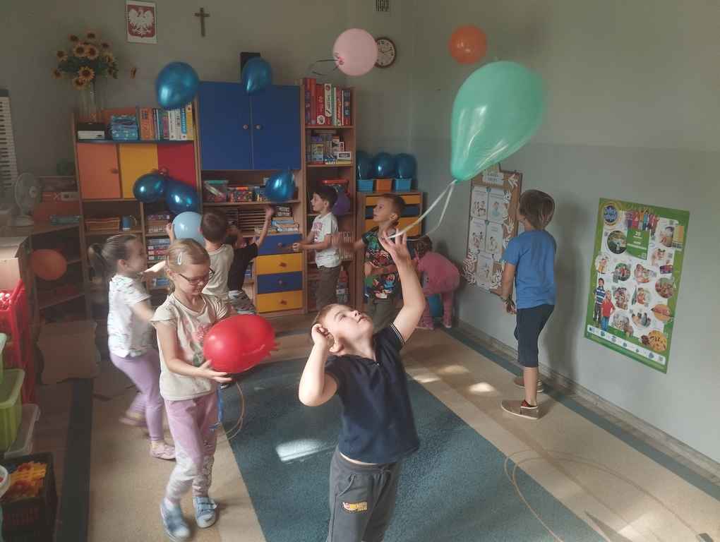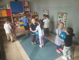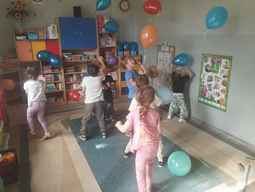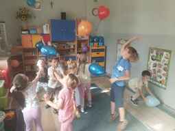 19-09-2025 r, Dzieci z grupy Misie obchodziły „Dzień Przedszkolaka". Na powitanie dostały balony, które samodzielnie ozdobiły. Potem bawiły się i tańczyły przy muzyce z repertuaru piosenki dziecięcej..