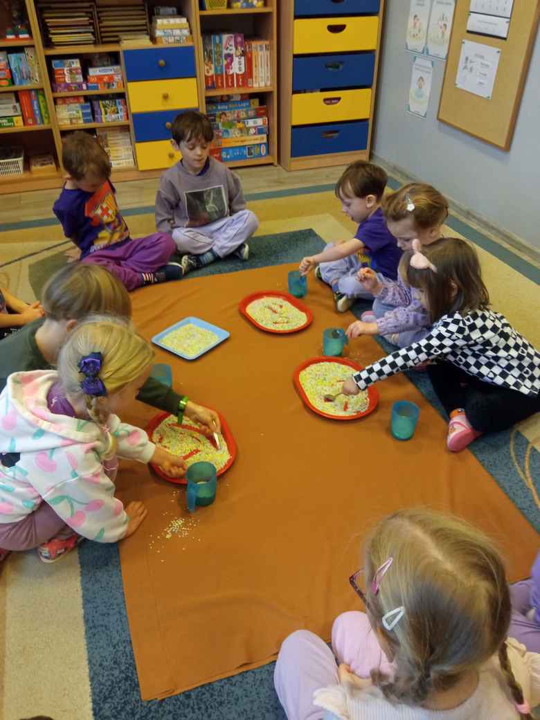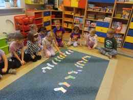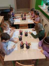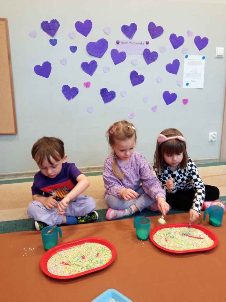 17-11-2025 r. w poniedziałek Misie przyszły do przedszkola ubrane na fioletowo z okazji Dnia Wcześniaka. Wysłuchały Listu od Marcelka - wcześniaka, który opisuje swoją historię. Miały przybliżony termin dzieci przedwcześnie urodzonych, dowiedziały się co to jest inkubator. Rozmawiały na temat niepełnosprawności oraz miały możliwość wykonywać zadania przy użyciu lewej ręki lub z zasłoniętymi oczami. Wykonały skarpetkową girlandę z jedną mniejszą symboliczną skarpetką.