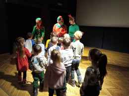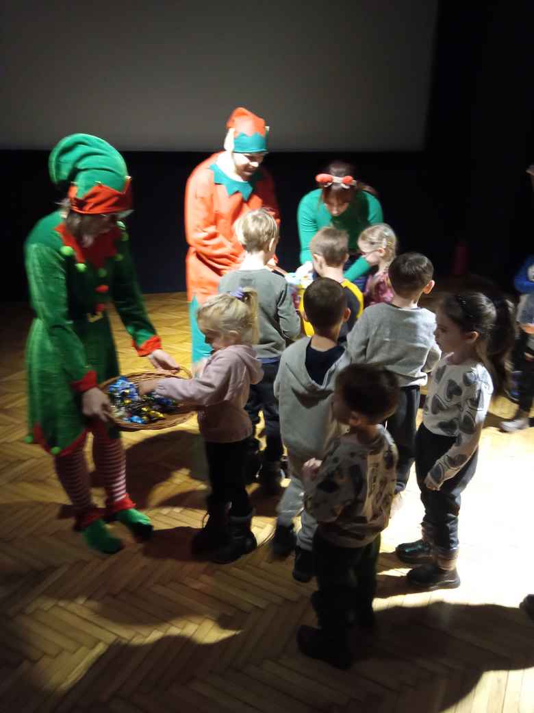 04-12-2025 r. w czwartek Misie pojechały do kina Sfinks. Oglądały film pt. "Święta z Astrid Lindgren." oraz miały niespodziankę: przybiegły do nich elfy z cukierkami i upominkami od Mikołaja.