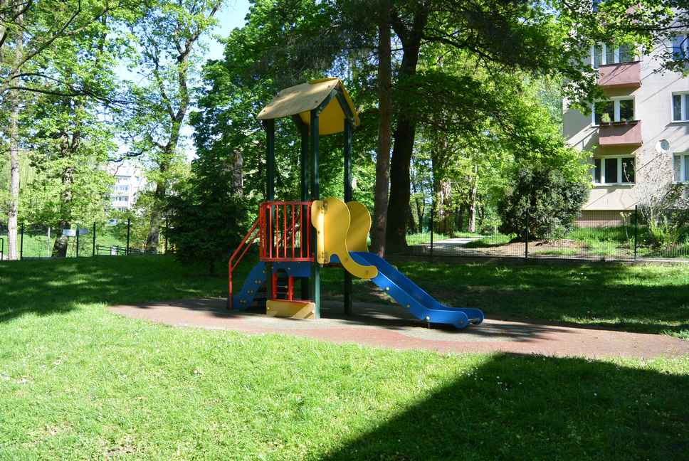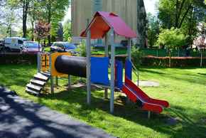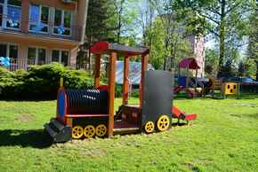 Dzieci mają do dyspozycji przestronny ogródek wyposażony w sprzęty ogrodowe i piaskownicę oraz dużo przestrzeni do zabaw ruchowych.
