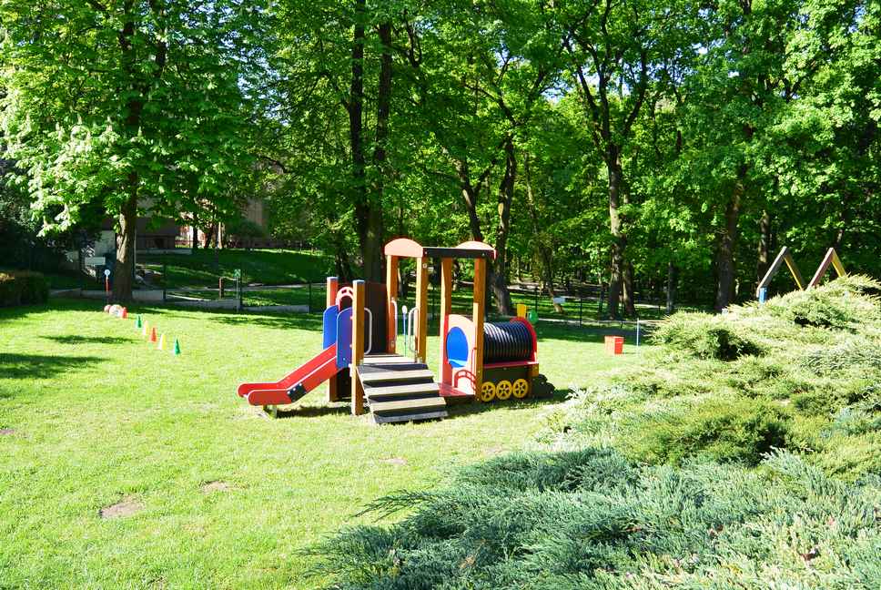 Nasze przedszkole usytuowane jest w malowniczym parku "Zielony Jar" pośród drzew i zieleni.