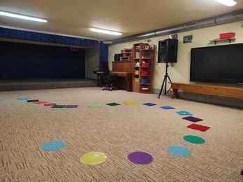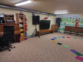 Przedszkole dysponuje również przestronnym pomieszczeniem do zebrań Rady Pedagogicznej, Rady Rodziców, spotkań z rodzicami oraz innymi zaproszonymi gośćmi.