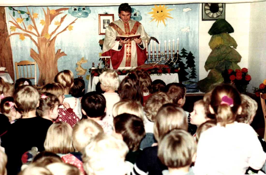 Dnia 24-10-1990 roku w przedszkolu odbyła się uroczysta msza święta oraz poświęcenie krzyży i sal przedszkolnych. Mszę prowadził ksiądz dziekan Jakub Gil. Takie mamy czasy, religia w szkole, szkolne zerówki w salach katechetycznych, a przedszkolne oddziały w szkole.