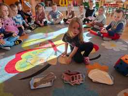 04-11-2025 r. Motylki" wzięły udział w zabawie matematycznej "Pomagamy budować domy świnkom". Dzieci rzucały kostką, a następnie przeliczały elementy potrzebne do budowy domków, zgodnie z wyrzuconą liczbą oczek.....